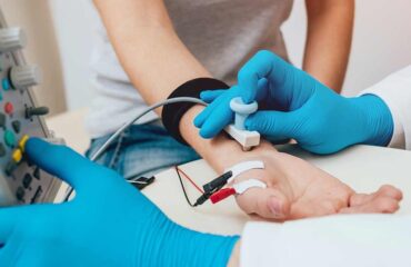 A standardized system has been developed for the electrode placement for a routine ECG. Ten electrodes are needed to produce 12 electrical views of the heart. An electrode lead, or patch, is placed on each arm and leg and six are placed across the chest wall. The signals received from each electrode are recorded. The printed view of these recordings is the electrocardiogram.